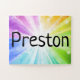 Customise this 30 piece puzzle with the child's first name or any word! Great for building hand-eye coordination and thinking skills for preschool kids or anyone! Bright rainbow with glowing rays and name in black fun print.
