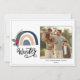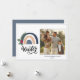 Such a cute holiday photo card with blue and tan boho rainbow with a sprig of pine bough and holly berries. So unique. Personalise with your choice of photo.