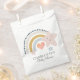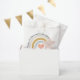 Modern adorable boho pastel rainbow watercolor baby shower favour bags for a baby girl; simple and sweet, with a small pink heart centre and pinks, blues and mustard hues. Soft muted colours. Offer some candy or other treat favours in these cute favour bags. Pass them out when your guests arrive or leave.