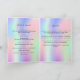 An elegant 4-page program. A girly rainbow, holographic background in pink, purple, blue and mint green. Personalise and add a photo, name, dates and your text.