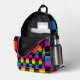 Go back to school in style with this rainbow plaid print backpack. Fun book bag features a cool abstract plaid pattern in all the colours of the rainbow and black, with black details. Original digital artwork by Buttercup's Clothing and Collectables.