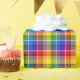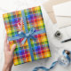 Gift wrap with a bright multicolored chequered plaid pattern. A Plaidwerx original tartan design.