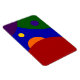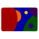 The moment I thought of making the centre section of this abstract design blue, my geek mind saw the rainbow coloured circles as an array of planets. A piece of a large red circle fills the left third of the frame. Peeking out from behind it is near half of a smaller orange circle. A small yellow dot resides near the top of the centre blue background. A portion of a violet planet curves through the upper right of the image, overlapping a segment of a larger green circle in the lower right. A small indigo planet lies on the green like a small moon.