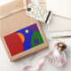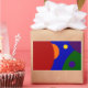 The moment I thought of making the centre section of this abstract design blue, my geek mind saw the rainbow coloured circles as an array of planets. A piece of a large red circle fills the left third of the frame. Peeking out from behind it is near half of a smaller orange circle. A small yellow dot resides near the top of the centre blue background. A portion of a violet planet curves through the upper right of the image, overlapping a segment of a larger green circle in the lower right. A small indigo planet lies on the green like a small moon.
