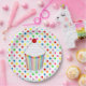 This fun rainbow polka dot plate has a yummy cupcake with cherry. This fun design will definitely add some yumminess to your celebration. Be sure to take a look at the coordinating designs in this collection.