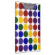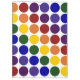 Rainbow coloured polka dots are arranged in rows on a white background. The offset rows form diagonals of each colour: violet, indigo, blue, green, yellow, orange, and red.