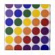 Rainbow coloured polka dots are arranged in rows on a white background. The offset rows form diagonals of each colour: violet, indigo, blue, green, yellow, orange, and red.