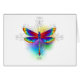 Bright, rainbow, polygonal dragonfly on white background, painted with watercolor.