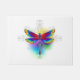 Bright, rainbow, polygonal dragonfly on white background, painted with watercolor.