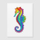 Artistically drawn, bright, rainbow, polygonal seahorse on white background. Bright tattoo.