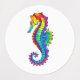 Artistically drawn, bright, rainbow, polygonal seahorse on white background. Bright tattoo.