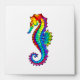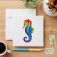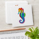 Artistically drawn, bright, rainbow, polygonal seahorse on white background. Bright tattoo.
