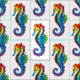 Artistically drawn, bright, rainbow, polygonal seahorse on white background. Bright tattoo.