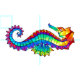 Artistically drawn, bright, rainbow, polygonal seahorse on white background. Bright tattoo.