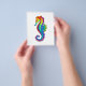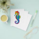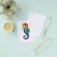Artistically drawn, bright, rainbow, polygonal seahorse on white background. Bright tattoo.
