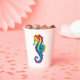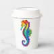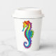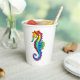 Artistically drawn, bright, rainbow, polygonal seahorse on white background. Bright tattoo.