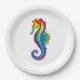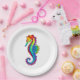 Artistically drawn, bright, rainbow, polygonal seahorse on white background. Bright tattoo.