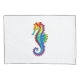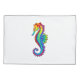 Artistically drawn, bright, rainbow, polygonal seahorse on white background. Bright tattoo.