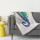 A quality printed throw has its advantages. This is a much finer weave throw than its loopier cousins, and though lighter, it is worth the investment for custom room accessorizing. The back is much prettier than the typical brown, and the fringe on the long sides very vivid, the selvage nicely done. Before photographing, I washed the throw in cold water, delicate, with a thicker woven throw the same size. On tumble dry low, this throw was dry in half the time as the other. This is a very practical quality if you use throws for furniture covers or to wrap up in frequently. The sleekness of the fabric makes it a great layer for accenting or protecting without the feeling of sitting on too much stuff. Perfect for napping or when you feel a light chill coming on. The color printing is beautiful and on this fabric, matched the design and color of my Photoshop image. This is an advantage for blending room fabrics and colors. The fringe on the short sides prints the colors from the design image and therefore varies from the side fringe. I streaked a white fractal line through the plaid pattern to give the illusion of weaving. This printed as crisp as an illusory thread, and put some white in the short side fringe, showing another advantage of print vs loomed- for artistic purposes, line lines, detail, and color integrity can be planned and preserved. My loomed throws have color limitations and more of a needlepoint texture. Print throws reproduce an exact image. The throw felt a little stiff straight out of the package, but this went away in the first delicate wash. Of course I searched the wash water for ink or bleeding and there was none.