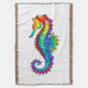 Artistically drawn, bright, rainbow, polygonal seahorse on white background. Bright tattoo.