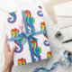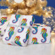 Artistically drawn, bright, rainbow, polygonal seahorse on white background. Bright tattoo.