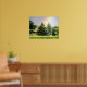 A fantastic print of a beautiful rainbow across a field going behind evergreens. Where obviously the 'pot of gold' resides :)