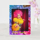 A Rainbow Pride Happy Holidays card for the Gay or Straight community who find enjoyment in living. A hilariously delightful Drag Queen with a bright pink rolled foam wig and brilliant yellow caribou feathers is featured on the front with the greeting "Happy Holidays." Sort of a take of a famous comedienne we all loved so much.