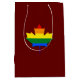 Gift Bag with maple leaf from flag of Canada in the colours of LGBT (lesbian, gay, bisexual, and transgender people) rainbow stripes flag, Canadian gay pride lgbtqiap+ design,
