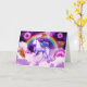 Rainbow pug in space riding a unicorn card