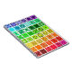 Brightly coloured notebook cover with rainbow shades of quilt pattern designs.