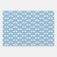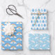 Cute blue rainy day pattern set on wrapping paper, featuring rainbows, clouds, rain drops, and umbrellas. Perfect for a baby shower, easter, or spring themed event.