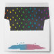 The inside of the envelope features a black, chalkboard style background with falling rainbow raindrops. The back of the envelope features falling rainbow raindrops which form a blue and pink puddle at the bottom of the envelope. Fits invites up to 5 x 7 inches.