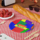 This colourful set of paper plates present a patchwork quilt design in rainbow colours with a textured look. Easily personalise or remove the text.