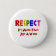 Rainbow letters spell out the word "Respect" with red and black letters underneath that say "It's more than a word." Wear this powerful woman statement or give it as a gift. And since respect is not limited to gender or age, anyone can help spread this important key to peace on earth.