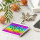 A premium key chain with a leopard Appaloosa horse head on a rainbow background.
