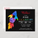 Rainbow Rocket Ship Outer Space Birthday Party Black Postcard Invitation. Rainbow watercolor rocket ship outer space themed simple classic modern birthday party supplies. www.SamAnnDesigns.com