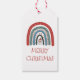 A cute boho watercolor rainbow Christmas holiday gift tag for your wrapping accessories. Whimsical red and blue tag with cute merry Christmas typography.