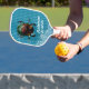 This Rainbow Scarab Beetle, Phanaeus vindex, appears to be captured in netting on this unique Pickleball paddle. In to Entomology, study this colourful insect, but don't let it distract you from your game. Its iridescent green, red, orange and yellow multicolored body is highlighted against an bright aqua blue netting. Any bug lover will treasure this fun photographic specimen.