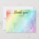 This flat note features a watercolor rainbow background on front and back, script "thank you" with swashes and your custom text. Use the template form to add your personalisation. Choose the "customise further" option to change the font.