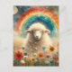 A sheep in a wildflower meadow with a beautiful rainbow AI generated art