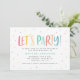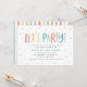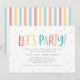 Let's party colourful rainbow spots and stripes birthday invitation. Ideal gender neutral birthday party invite. With its fun bright colourful design featuring stripes and polka dots this timeless classic is sure to look good at your party. Part of a co-odinating design.