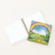 Beautiful personalised colourful kid's sketchbook for all of their amazing drawings, paintings or doodles. Image is a rainbow and blue sky with clouds over rolling countryside with trees and pretty pink and yellow flowers. They can paint, crayon, draw and doodle to their hearts content to help their mental health stay positive and happy in their own personalised sketchbook. You can change the title and add a name by clicking on the personalise button. Change 'inside paper design' on the right of the image, choose from lined paper, bullet, sketch, graph, recipe, checklist and more.
