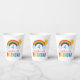 This super cute girl's birthday party paper party cups feature a colourful bright rainbow design with fluffy clouds and summer sunshine. Personalise with your child’s name and birthday year. Clean white background with girly rainbow colours: red, orange, yellow, hot pink, green, teal, royal blue and violet purple.