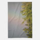 This awesome kitchen towel features a beautiful landscape photo of a rainbow over the top of some trees. The photograph was taken immediately after a rainstorm to capture the vivid colours of the rainbow. The surrounding sky is grey with cloud cover.