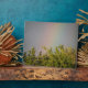 This awesome plaque features a beautiful landscape photo of a rainbow over the top of some trees. The photograph was taken immediately after a rainstorm to capture the vivid colours of the rainbow. The surrounding sky is grey with cloud cover.