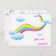 This fun sweet invitation is a great way to invite your friends to your Birthday Party. The front is a bright white with a bright rainbow that almost looks like a slide in the sky. On the front it says "You're invited" and your party details are on the back.