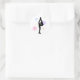 Our Rainbow Snowflakes Ice Skating Party Sticker features the black silhouette of a figure skater surrounded by rainbow snowflakes.