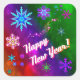 Square sticker with an image of pretty blue, fuchsia and green snowflakes on a rainbow background of holiday lights and a white holiday sentiment. See matching square invitation, confetti and wrapping paper. See the entire New Year Sticker collection under the CARDS & STICKERS category in the HOLIDAYS section.