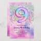 Rainbow Sparkle Glitter 9th Birthday Party Invitation