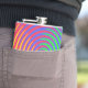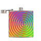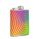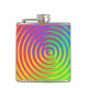 Here is a colourful flask with an abstract spiral rainbow pattern swirling around a central target in colours of green, blue, yellow, orange and red. Could be used in the context of LGBT.